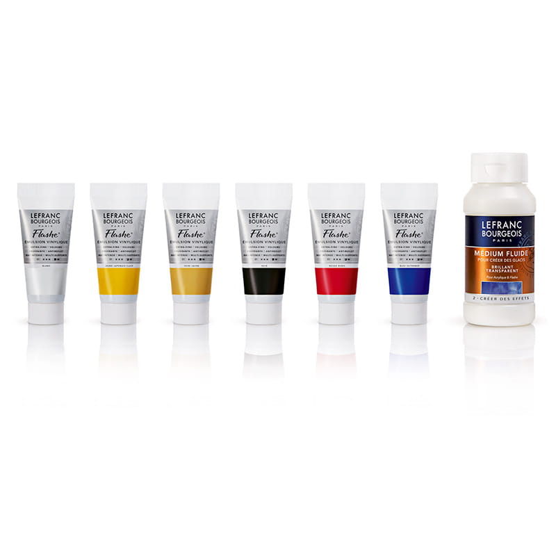 Farby Flash 6x20 ml + 120 ml Medium fluide Lefranc Bourgeois Discovery Set zestaw farb winylowych