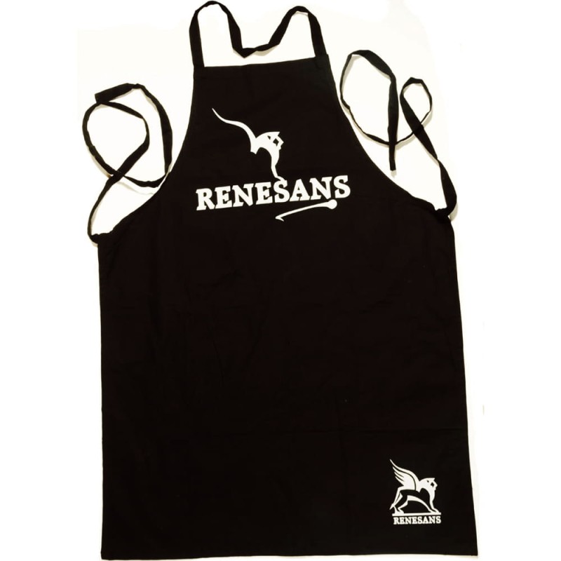 Fartuch malarski firmy Renesans w kolorze czarnym z białym nadrukiem logo producenta. Wykonany w 100% z przyjemnej i oddychającej bawełny, zapewni komfort i ochroni odzież przed zabrudzeniem podczas pracy twórczej. Fartuch o standardowym, uniwersalnym rozmiarze: szerokość - 65 cm, długość - 89 cm.