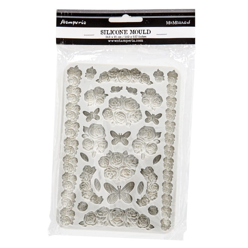 Foremka silikonowa Stamperia - Róże i motyle z serii Shabby Rose