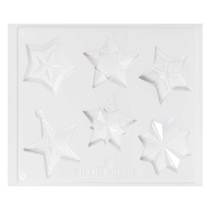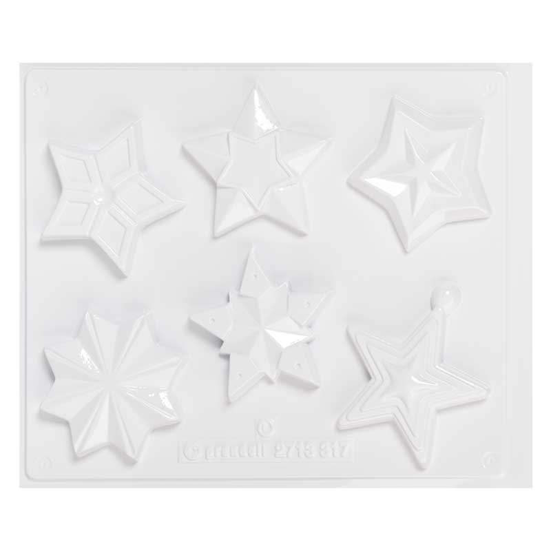 Foremka wielokrotnego użytku, wykonana z trwałego tworzywa. Sześć kształtów gwiazd.