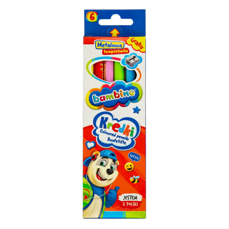 Kredki Bambino drewniane grube 6kol + temperówka