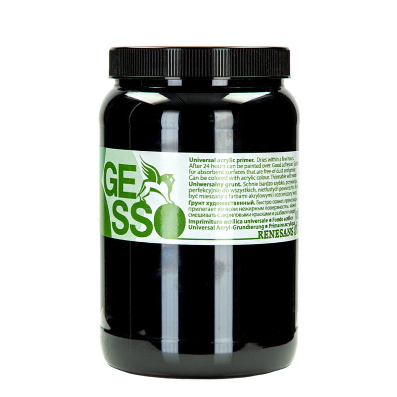 Gesso to uniwersalny czarny grunt malarski, który może być mieszany z farbami akrylowymi i rozcieńczany wodą. Dzięki zastosowaniu żywicy akrylowej doskonale nadaje się do gruntowania płótna malarskiego, ale można używać go również jako pastę strukturalną. Cechuje się bardzo krótkim czasem schnięcia. Doskonale przywiera do wszystkich odtłuszczonych powierzchni.