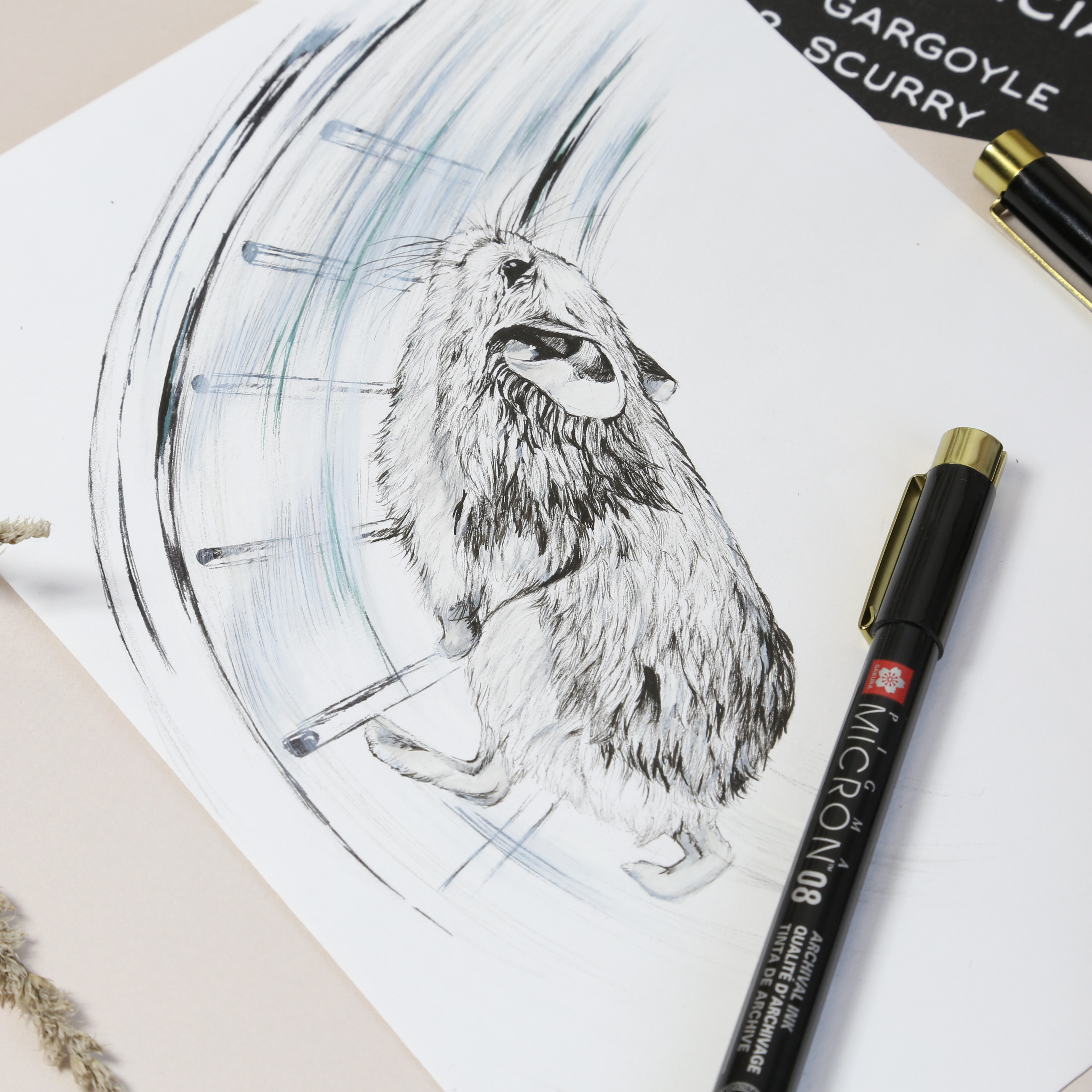 W zestawie 3 fantastyczne narzędzia na rozmaite rysunkowe wyzwania, niczym trzej muszkieterowie poradzą sobie z wyzwaniami. W zestawie mamy: 2 czarne pisaki i jeden szary. Nasz inktoberowy gargulec dzięki nim nabrał objętości i bardziej realnego wyglądu.