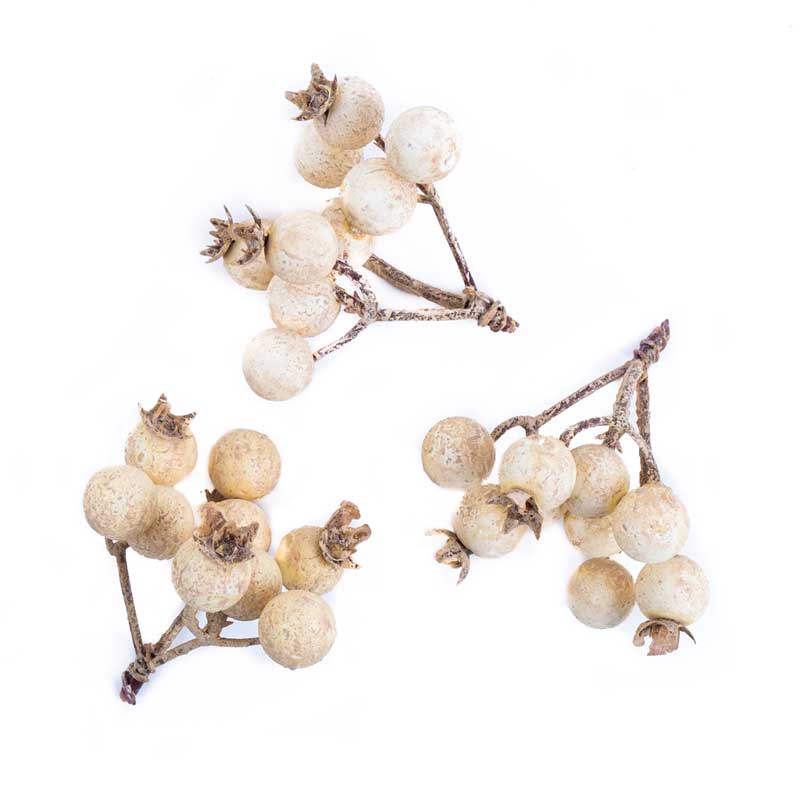 Drobne gałązki z jasnymi jagodami, które do złudzenia przypominają naturalne rośliny. Wykonane z dużą dbałością o szczegóły, wyróżniają się kremową kolorystyką z subtelnymi nieregularnościami i przebarwieniami, co nadaje im realistyczny wygląd.