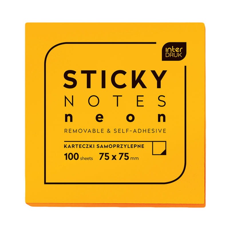 Karteczki samoprzylepne Interdruk Neon 75 x 75 mm pomarańczowe
