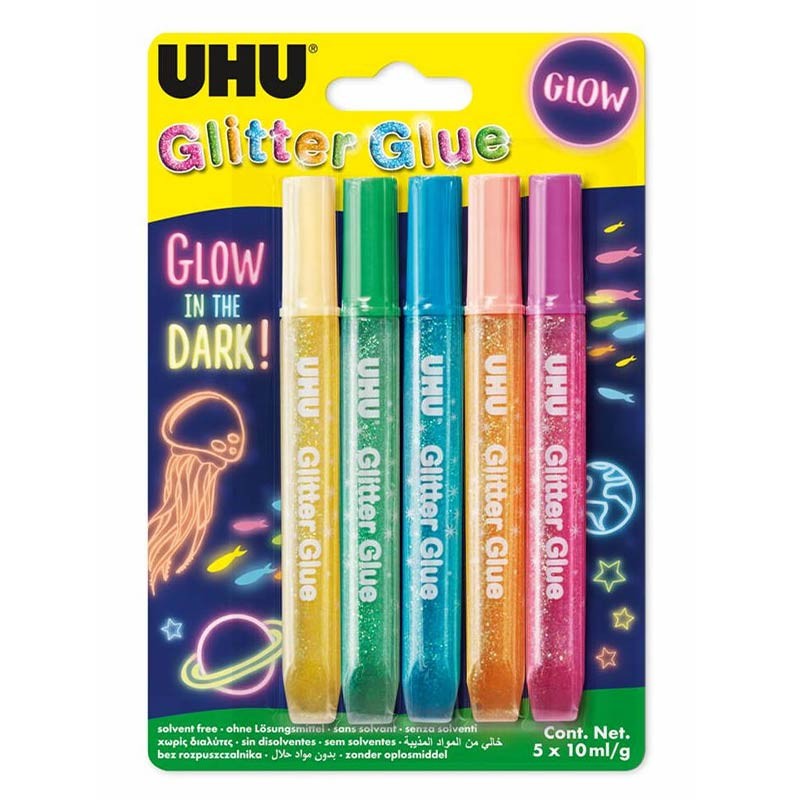 Klej brokatowy UHU 6 x 10 ml świecący w ciemności