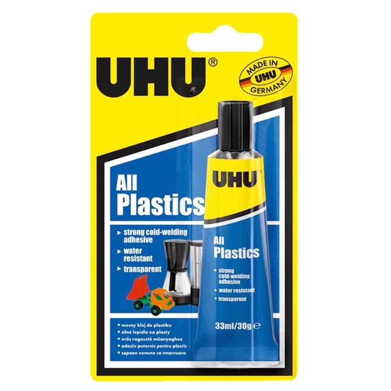 Uniwersalny klej marki UHU o nazwie All Plastics to doskonałe rozwiązanie do codziennych napraw i projektów rzemieślniczych. Zawarty w tubce o pojemności 33 ml klej charakteryzuje się silnym i trwałym wiązaniem, sprawdzającym się idealnie przy różnych materiałach.