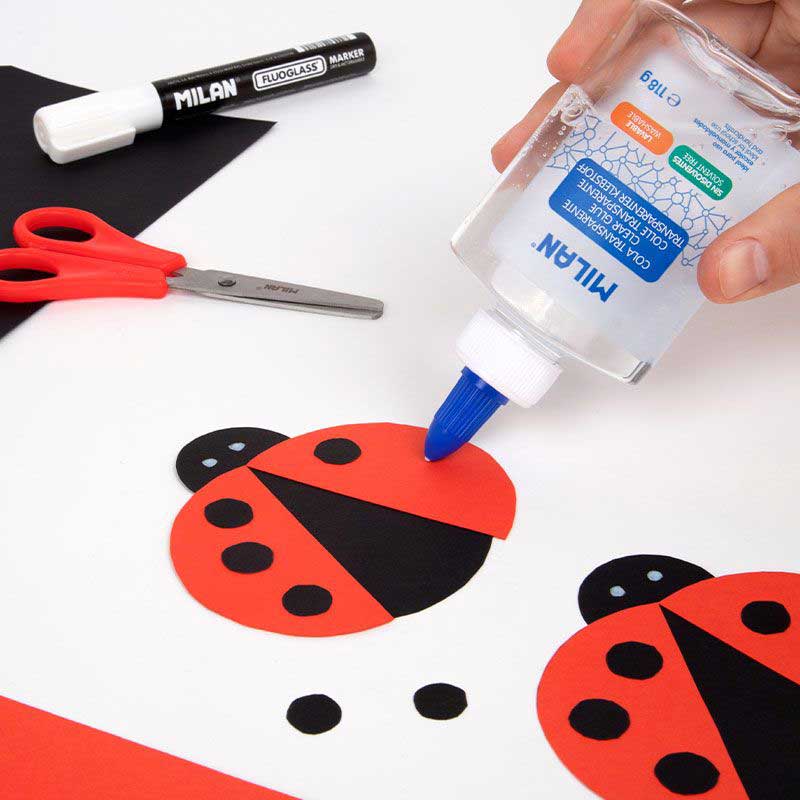 Szybkoschnący klej szkolno-biurowy po zaschnięciu transparentny; nie zawierający rozpuszczalników, zmywalny wodą. Doskonały klej do biura, szkoły i prac craftowych i scrapbookingu, łatwo skleja papier, karton, zdjęcia, tkaninę, filc, korek, skórę i piankę. Plastikowa butelka z wbudowanym dozownikiem w nakrętce, pozwalającym na łatwą i precyzyjną aplikację.