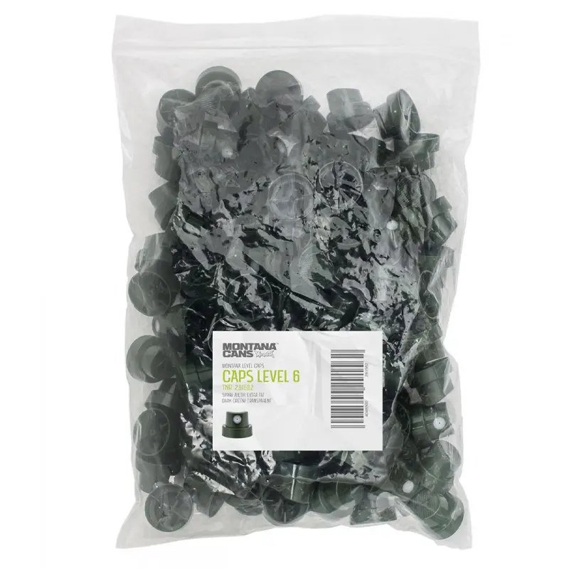 Level 6 Cap to ultra szeroka, gruba dysza oferująca największe rozpylenie farby w zakresie od 5 do 25 cm. Zapewnia maksymalną wydajność podczas wypełniania ogromnych powierzchni w rekordowym czasie, co czyni ją idealnym rozwiązaniem do dynamicznych realizacji na dużą skalę. Została zaprojektowana z myślą o puszkach niskociśnieniowych Montana GOLD, ale może być również stosowana z puszkami wysokociśnieniowymi. Jako część serii Ultra Wide Fat Cap gwarantuje wyjątkowo szerokie linie i intensywną aplikację farby. Dzięki specyficznej konstrukcji umożliwia równomierne nakładanie koloru z umiarkowaną do dużej mgiełką, co może się różnić w zależności od warunków atmosferycznych. Szczególnie ceniona wśród artystów graffiti, którzy potrzebują szybkiego pokrycia dużych obszarów. Ze względu na wysoką wydajność rozpylania może prowadzić do nadmiernej aplikacji farby lub kapania, dlatego przed rozpoczęciem pracy warto dostosować technikę aplikacji do pożądanego efektu.