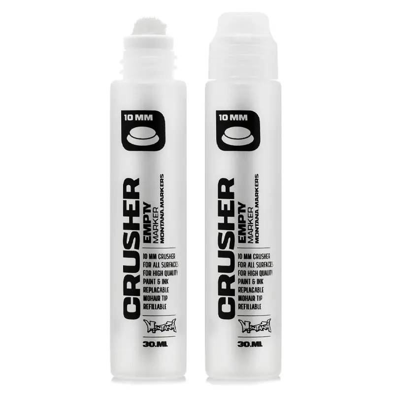 Montana Replacement Tip 10 mm Crusher to wysokiej jakości wymienne końcówki filcowe przeznaczone do markerów Montana EMPTY CRUSHER 10 mm. Wykonane z wytrzymałego moheru, zapewniają długą żywotność i równomierny przepływ farby lub tuszu, co pozwala na tworzenie zarówno precyzyjnych linii, jak i charakterystycznych efektów dripów.