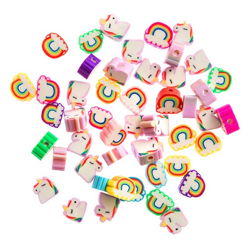 Polimerowe koraliki 1 cm - 48 szt. dpCraft jednorożce i tęcze