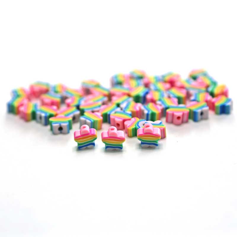 Polimerowe koraliki 1 cm - 48 szt. dpCraft tęczowe kwiatki