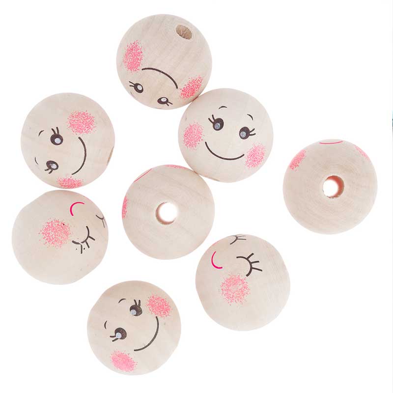Koraliki drewniane kulki buźki dpCraft 3 cm - 8 szt.