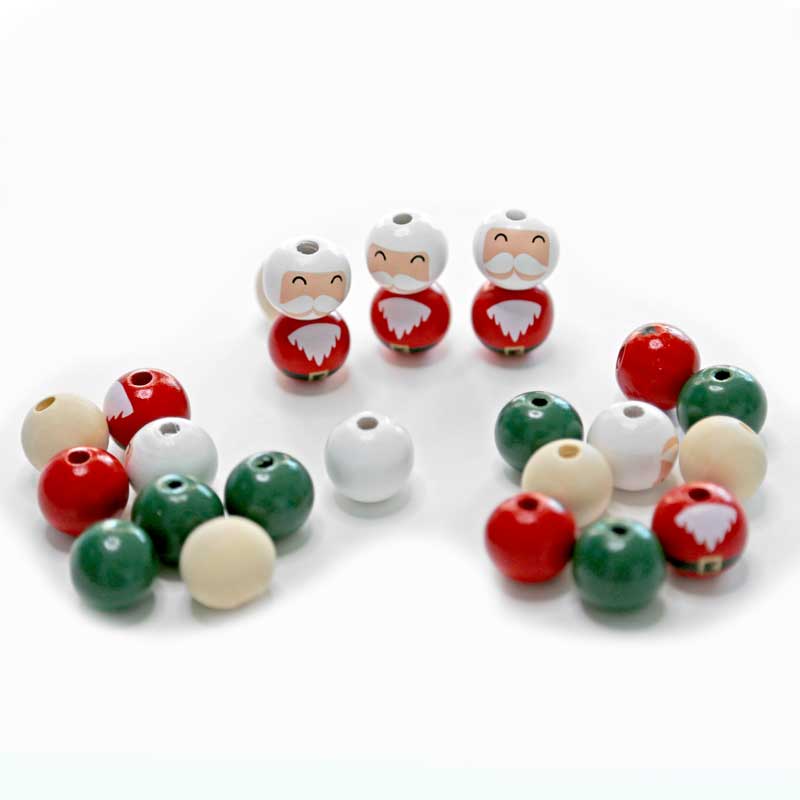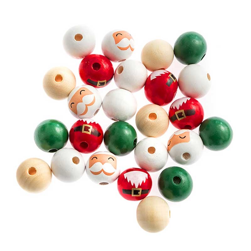 Koraliki drewniane kulki dpCraft 20 mm 25 szt. Mikołaje mix