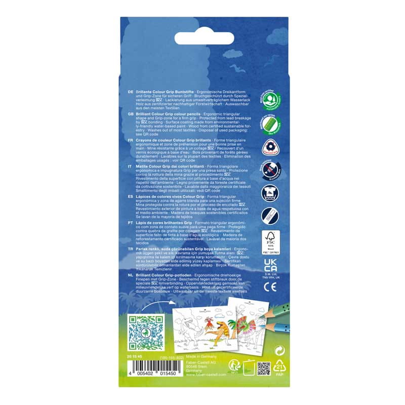 Kredki Faber-Castell Colour Grip 2001 Dinozaur zestaw 10 szt. + 3 szt. + naklejki