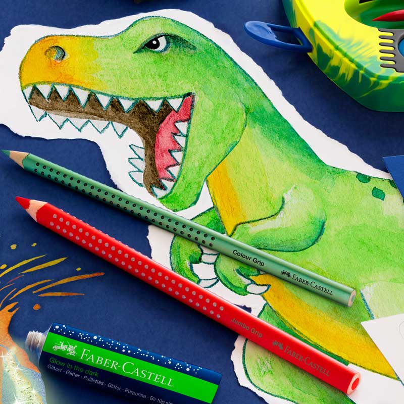 Kredki Grip 2001 Faber-Castell Dinozaur - kolorowy świat dla małych artystów