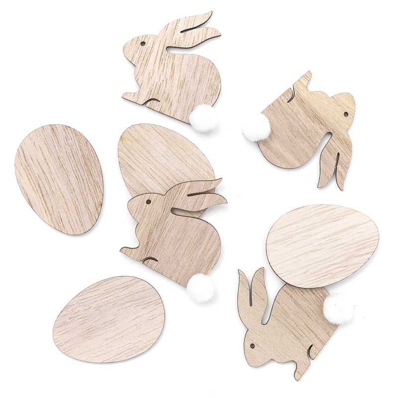 Kształty z drewna jajka i króliczki z pomponikiem dpCraft 8 szt.
