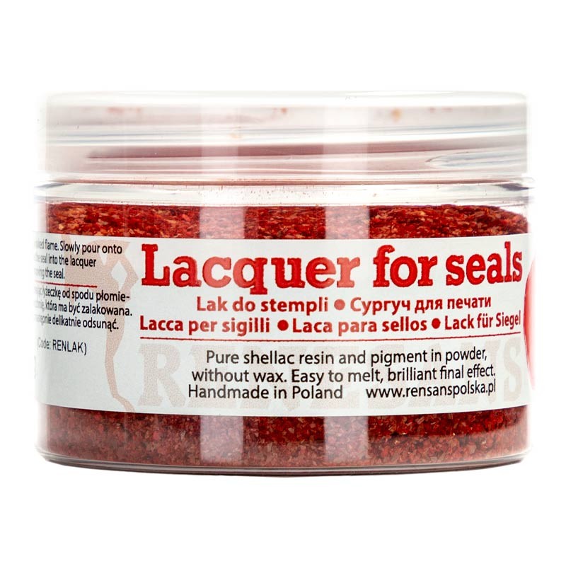 Lak w proszku na bazie szelaku to wyjątkowy produkt, nie zawiera wosku, jest mieszaniną szelaku i pigmentu, dzięki czemu pieczęć ma intensywny kolor i piękny połysk.