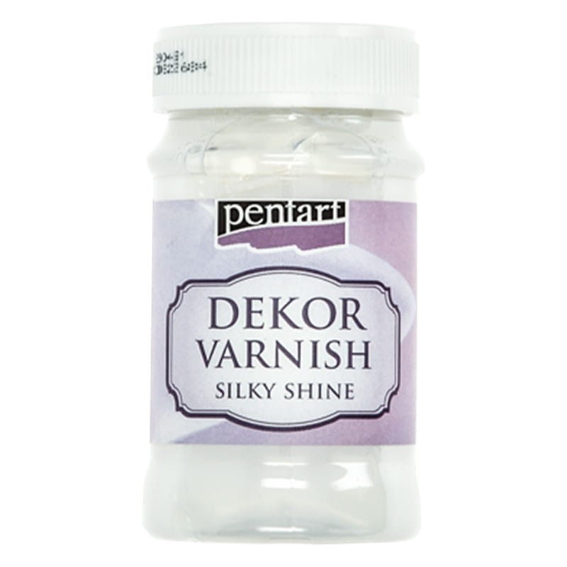 Pentart Dekor Varnish o półmatowym wykończeniu to rzadki, mleczny lakier wodny, który po wyschnięciu staje się zupełnie przezroczysty. Werniks najlepiej nakładać pędzlem z miękkim, syntetycznym włosiem. Dzięki temu, że jest to produkt na bazie wody, nie trzeba używać rozpuszczalników, by umyć ręce i narzędzia. Lakier wykoczeniowy Dekor Varnish ma uniwersalne zastosowanie, nadaje się do zabezpieczania dekoracji wykonanych farbami kredowymi,j ak również może być używany do zabezpieczania dekoracji w technice decupage.