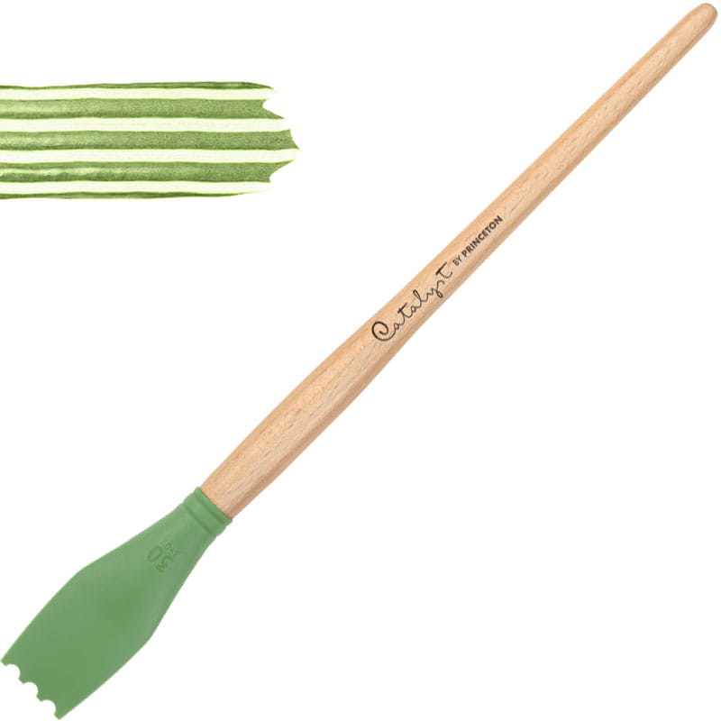 Łopatka Princeton z serii Catalyst Contour wykonana z elastycznego silikonu pozwala artystom na nowe formy ekspresji twórczej. Forma będąca czymś pomiędzy pędzlem klasycznym a szpachelką malarską pozwala na swobodne eksperymentowanie z powierzchnią malarską czy rzeźbiarską. Seria Princeton Blade o konturowanych brzegach w wielu kształtach ułatwi poszukiwanie ciekawych faktur, czy nowych form zarówno podczas pracy z farbami i mediami, jak również w ceramice, rzeźbie i innych technikach. Jej konstrukcja - połączenie giętkiego sylikonu z drewnianym trzonkiem - pozwala wygodnie ułożyć łopatkę w dłoni i sprawia, że szpatułka łatwo reaguje na nacisk.