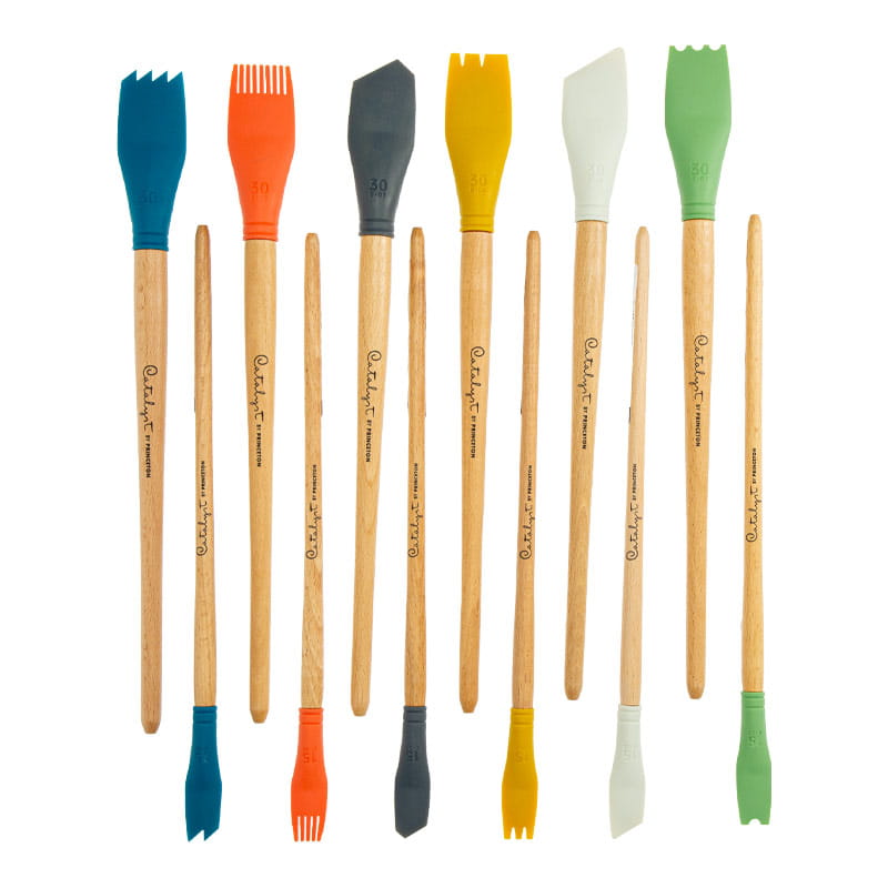 Łopatka Princeton z serii Catalyst Contour wykonana z elastycznego silikonu pozwala artystom na nowe formy ekspresji twórczej. Forma będąca czymś pomiędzy pędzlem klasycznym a szpachelką malarską pozwala na swobodne eksperymentowanie z powierzchnią malarską czy rzeźbiarską. Seria Princeton Blade o konturowanych brzegach w wielu kształtach ułatwi poszukiwanie ciekawych faktur, czy nowych form zarówno podczas pracy z farbami i mediami, jak również w ceramice, rzeźbie i innych technikach. Jej konstrukcja - połączenie giętkiego sylikonu z drewnianym trzonkiem - pozwala wygodnie ułożyć łopatkę w dłoni i sprawia, że szpatułka łatwo reaguje na nacisk.