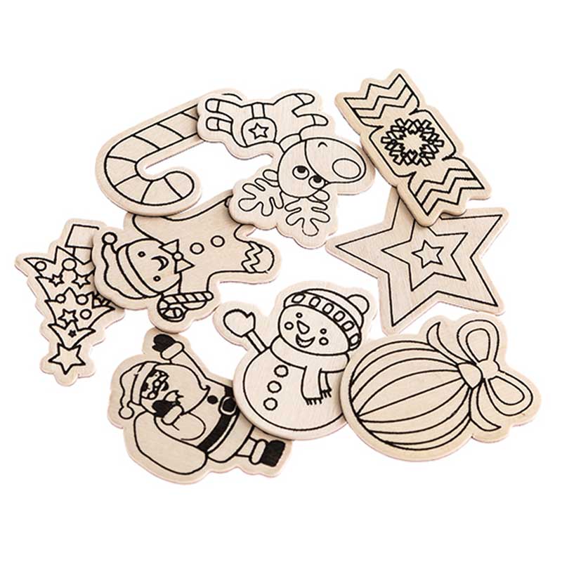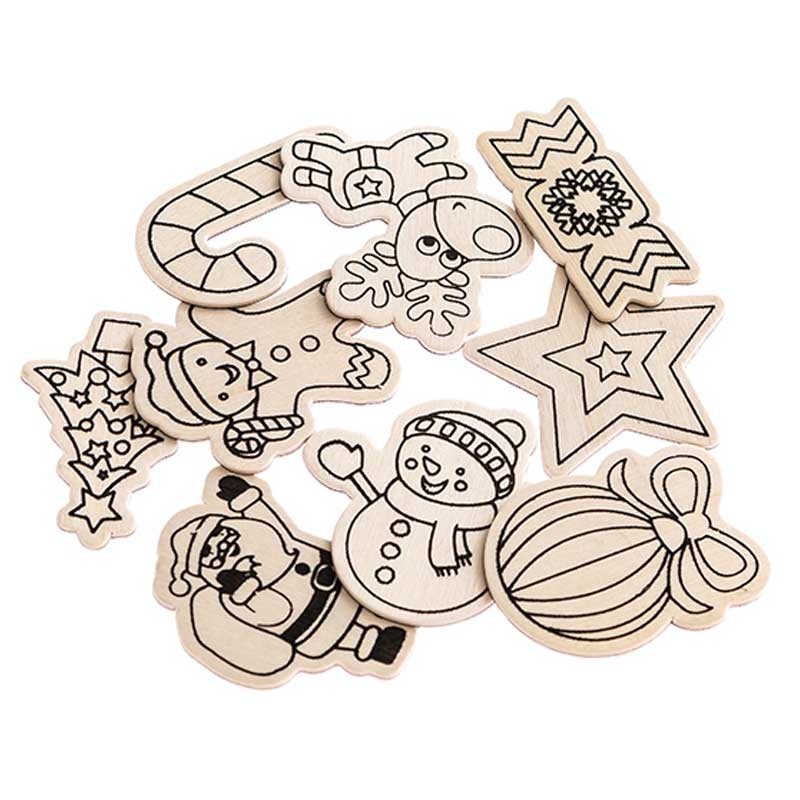 Magnesy drewniane do kolorowania dpCraft 9 szt. święta