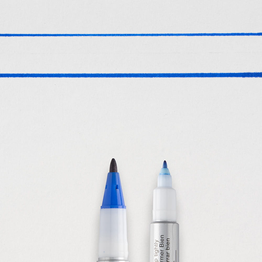 Grubsze zakończenie markera sprawdzi się przy standardowym użyciu oraz zapełnianiu większych powierzchni, natomiast cieńsza końcówka jest idealna do szczegółów oraz precyzyjnych linii.