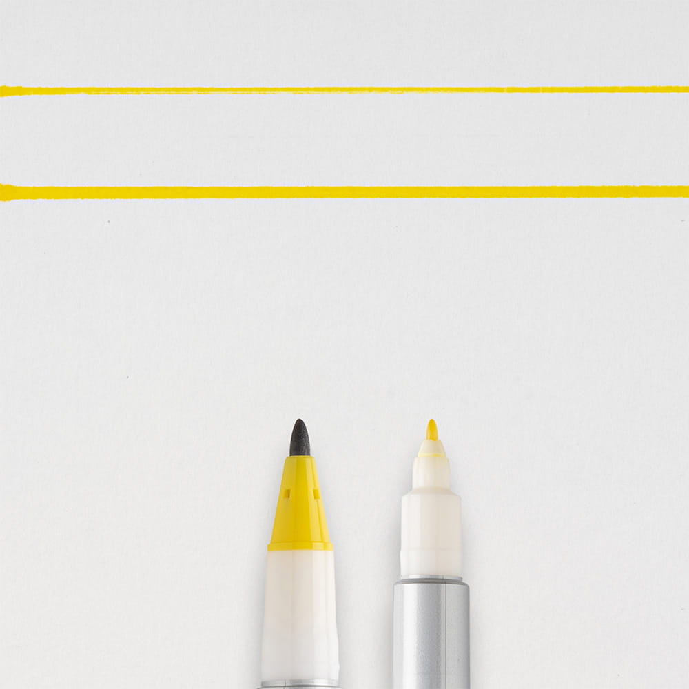 Grubsze zakończenie markera sprawdzi się przy standardowym użyciu oraz zapełnianiu większych powierzchni, natomiast cieńsza końcówka jest idealna do szczegółów oraz precyzyjnych linii.