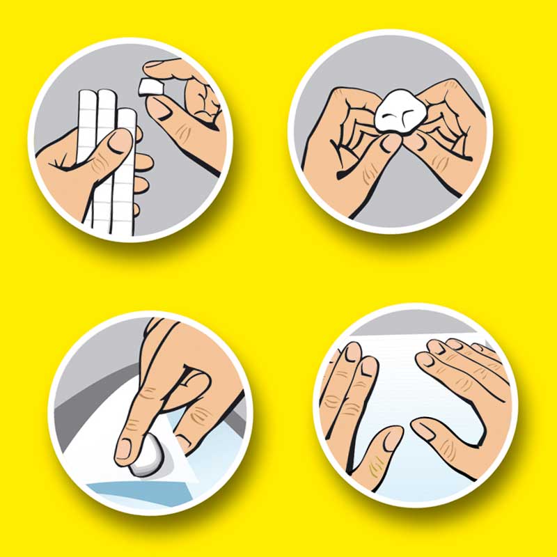 Masa klejąca to praktyczne rozwiązanie jako alternatywa dla pinesek, taśmy i gwoździków. Usuwalny klej wielokrotnego użytku sprawdza się idealnie do mocowania małych przedmiotów, takich jak zdjęcia, rysunki czy plakaty, na różnych powierzchniach, w tym ścianach, drzwiach czy meblach. Testowany dermatologicznie. Nadaje się do mocowania na drewnie, cemencie, szkle, metalu, plastiku i porcelanie, doskonały do plakatów, dekoracji, małych urządzeń elektronicznych, kabli i wielu innych. Nieodpowiedni do delikatnych powierzchni i materiałów, oraz nie używać na świeżo pomalowanych powierzchniach i tapetach - zaleca się przetestowanie na małej powierzchni przed użyciem.