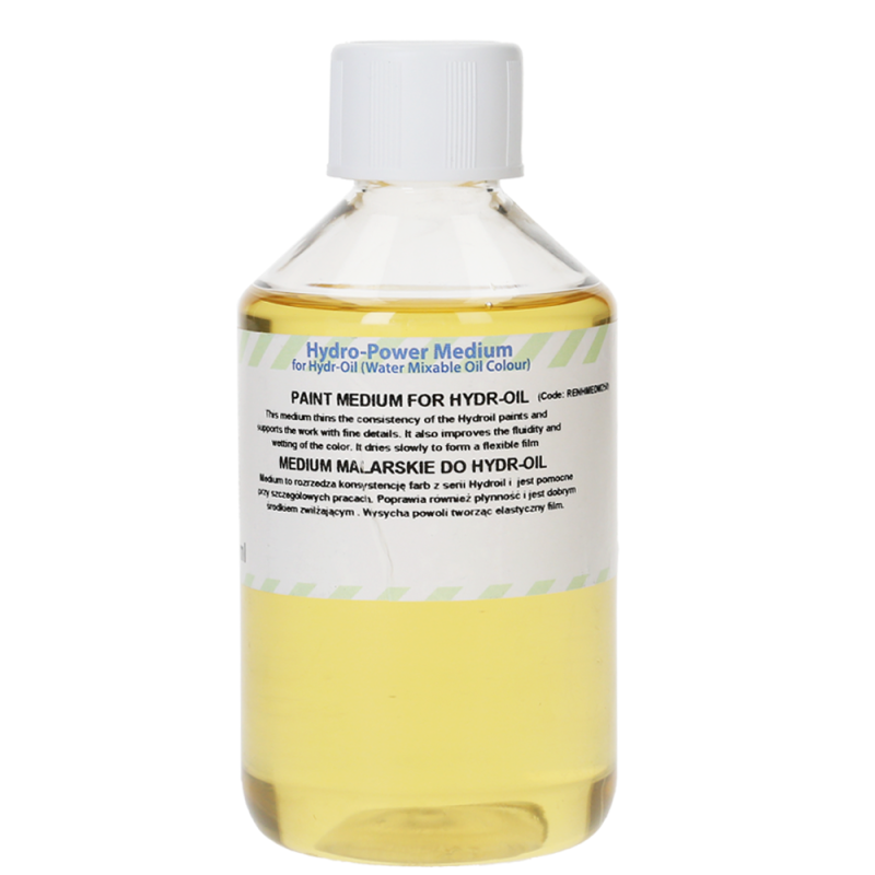 Medium malarskie Hydr-Oil stworzone z myślą serii farb olejnych rozcieńczalnych wodą Hydr-Oil Renesans. Dodane do farby rozrzedza jej konsystencję, ułatwiając pracę – szczególnie dobrze sprawdzi się do prac wymagających wielu detali. Poprawia płynność i jest dobrym środkiem zwilżającym. Medium zachowuje właściwości wodorozcieńczalne farb, umożliwiając czyszczenie pędzli w wodzie.
