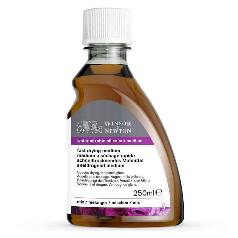 Medium Fast Drying dedykowane farbom olejnym wodorozcieńczalnym Artisan Winsor & Newton. Przyspiesza schnięcie farb olejnych Artisan Winsor & Newton o około 50%, poprawia ich płynność, wygładza pociągnięcia pędzla, zwiększa połysk i przezroczystość farby. Znakomicie nadaje się do lawowania, dzięki czemu łatwiejsze jest malowanie detali. Nie wpływa na pozostałe właściwości farby olejnej.
