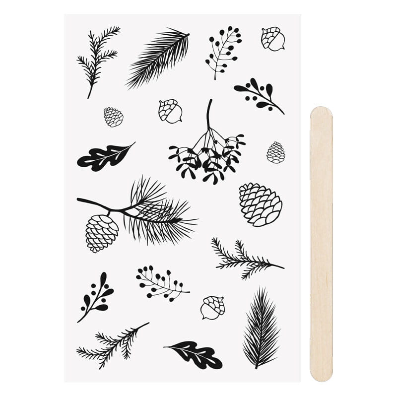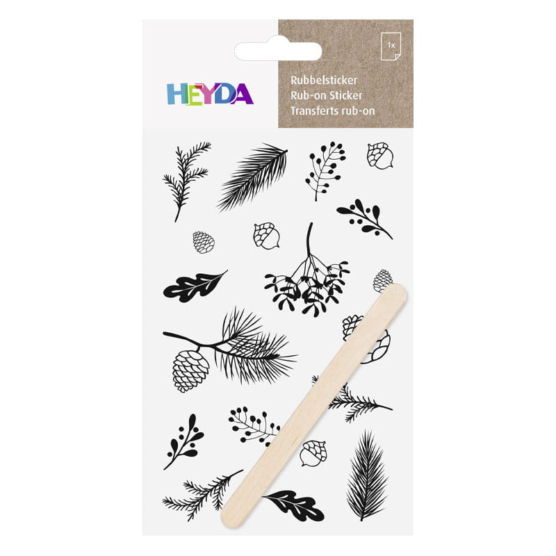Czarne naklejki rub-on o połyskującym wykończeniu, doskonale sprawdzą się w projektach kreatywnych, takich jak tworzenie kartek, scrapbooking, personalizacja przedmiotów codziennego użytku czy dekoracje na specjalne okazje. Dzięki swojej delikatnej warstwie klejącej łatwo przenoszą się na różnorodne materiały, takie jak papier, karton, szkło, porcelana, drewno i inne gładkie powierzchnie. Produkt oferowany jest w formie arkusza o wymiarach 100 × 190 mm, zawierającego starannie zaprojektowane motywy. W zestawie znajduje się również drewniany patyczek do aplikacji oraz instrukcja obsługi, co czyni dekorowanie prostym i intuicyjnym.