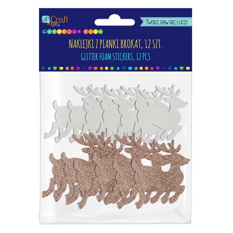 Wykonane z pianki naklejki dpCraft gwarantują świetne efekty dekoracyjne ze względu na swoją trójwymiarowość. Świąteczne naklejki w kształcie reniferów doskonale nadają się nie tylko do tworzenia dziecięcych arcydzieł, ale też do zdobienia przeróżnych projektów, takich jak albumy scrapbookingowe, kartki okolicznościowe, exploding boxy, ozdabianie prezentów itp. Ich oryginalny kształt i intensywny blask nadadzą każdemu projektowi wyjątkowego klimatu świąt.