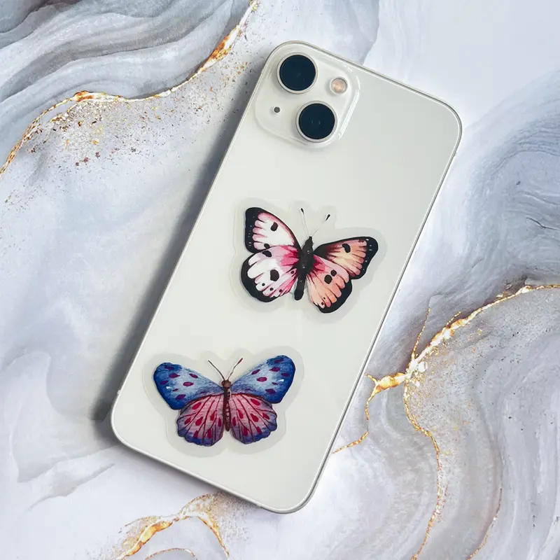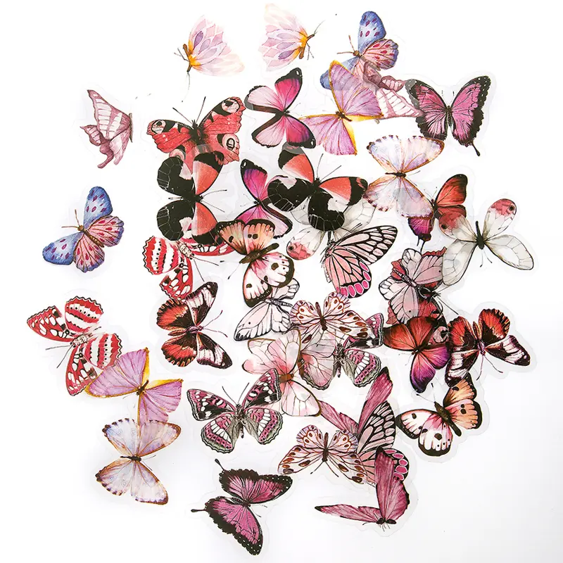 Naklejki dpCraft to wysokiej jakości ozdoby z transparentnej folii PET z motywami kolorowych motyli. Satynowe wykończenie nadaje im subtelny, naturalny wygląd.