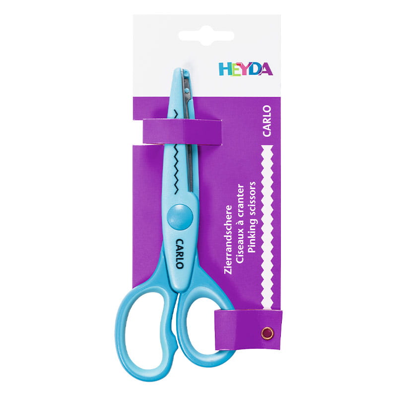 Ozdobne nożyczki Carlo firmy Heyda są idealne do dodawania dekoracyjnych brzegów zdjęciom, albumom, kartkom okolicznościowym i innym projektom plastycznym i scrapbookingowym. Posiadają ostrza ze stali nierdzewnej w kształcie regularnych ząbków, osadzone w trwałej, wygodnej plastikowej rączce, zapewniając bezpieczne używanie. Narzędzie umożliwia precyzyjne cięcie w papierze, cienkiej tekturze, bibule itp., tworząc skomplikowane dekoracyjne wzory.