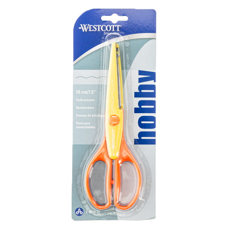 Nożyczki dekoracyjne Westcott o długości 19 cm są idealne do wycinania wzorów w papierze, nadając brzegom dekoracyjny wygląd, w kształcie szerokiej falbanki. Posiadają ostrza ze stali nierdzewnej w regularnym kształcie ząbków, osadzone w trwałej, wygodnej plastikowej rączce, co zapewnia bezpieczne użytkowanie. Narzędzie umożliwia precyzyjne cięcie w różnych materiałach, takich jak papier, cienka tektura, bibuła, tworząc skomplikowane dekoracyjne wzory.