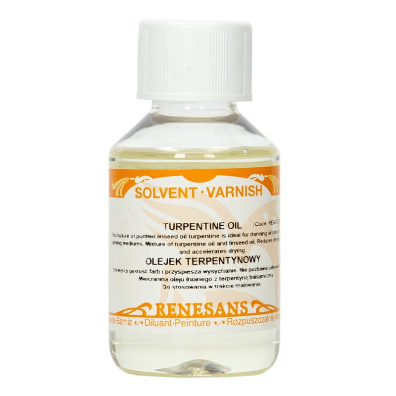 Olejek terpentynowy rozrzedza farbę olejną i przyspieszenia jej wysychanie. W odróżnieniu od innych rozpuszczalników farb olejnych, nie pozbawia farby połysku. Stosuje się go w trakcie malowania. Ze względu na tendencję do żółknięcia należy dodawać do farby w niewielkiej ilości.