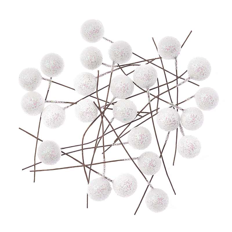 Owoce ostrokrzewu dpCraft 1,2 cm 24 szt. - biały brokat