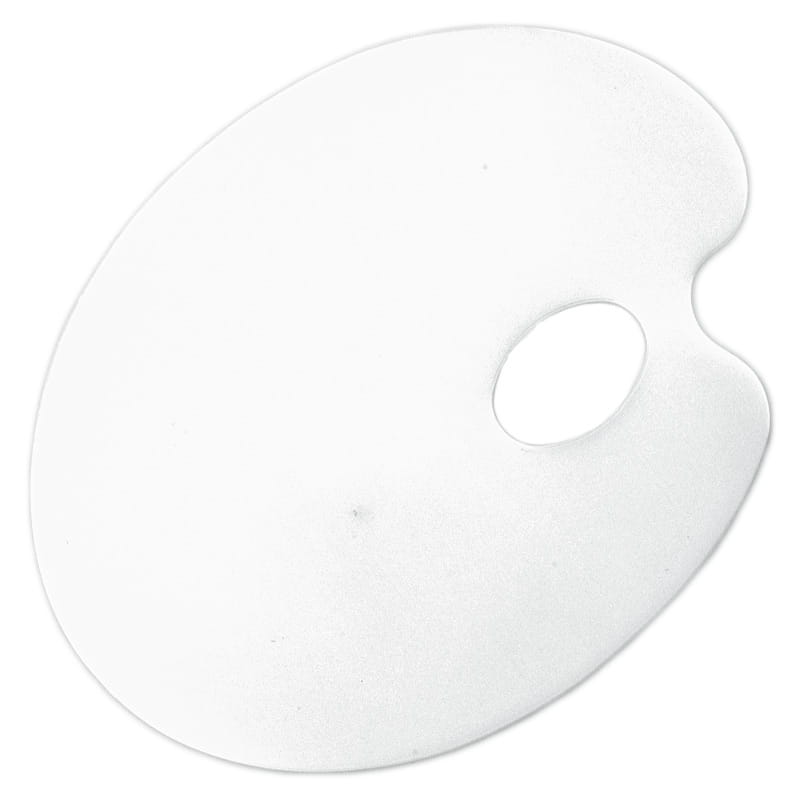 Owalna paleta malarska o wymiarach 22 x 17 x 0,2 cm, wykonana z trwałego tworzywa sztucznego, posiada specjalnie wyprofilowany otwór na palec, co sprawia, że jest wygodna i komfortowa w użyciu. Paleta nadaje się do farb akrylowych, olejnych, gwaszy i wiele innych.