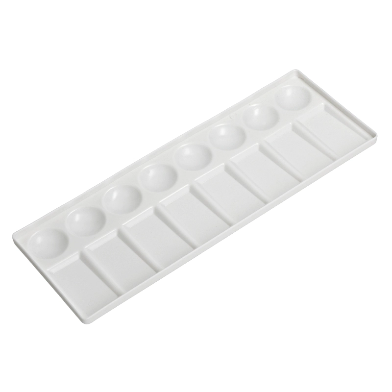 Prostokątna paleta plastikowa stworzona z myślą o wygodnym mieszaniu farb akwarelowych i innych farb wodnych. Posiada 8 zagłębień na wyciśniętą farbę i 8 powierzchni do mieszania farb zapewniając komfortowe szukanie idealnych tonów barw.