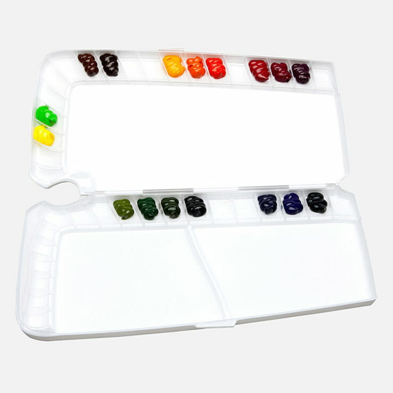 Dodatkowo, paleta jest zamykana co sprawia że jest bardzo praktyczna. Ta bardzo ergonomiczna i nowoczesna paleta malarska do farb akwarelowych, koreańskiej firmy Mijello, jest dostępna w rozmiarze: 18,5 cm szerokości, 35,5 cm długości oraz 2,4 cm wysokości.