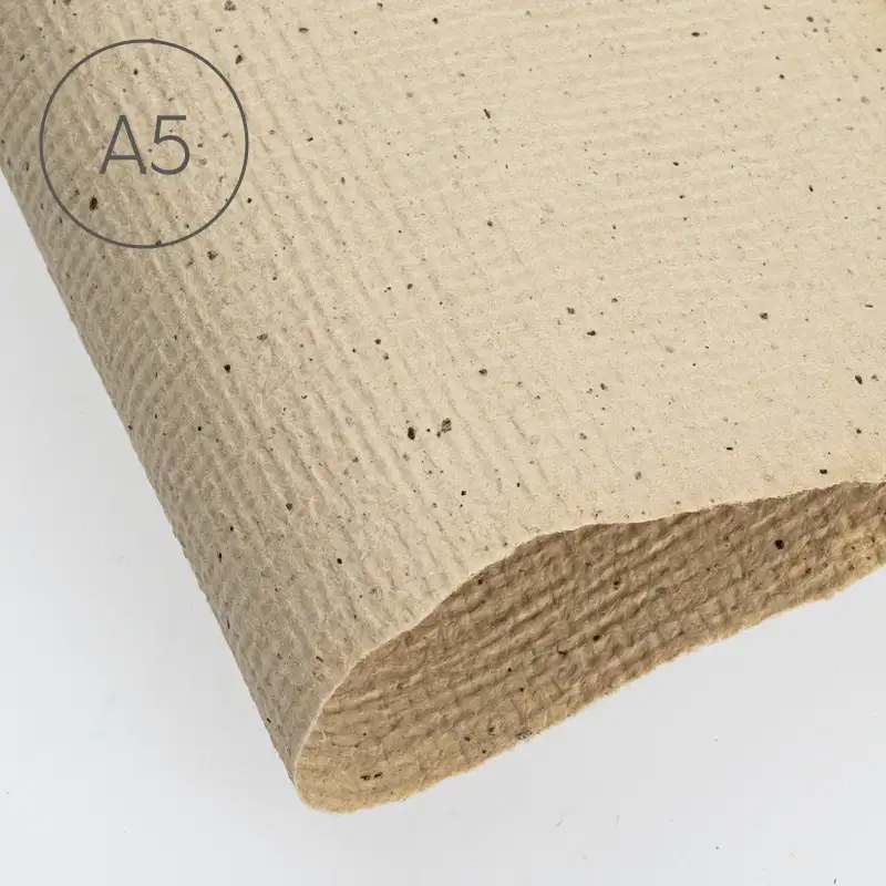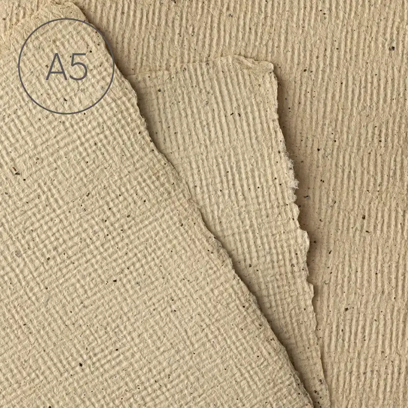 Papier czerpany w formacie A5 o fakturze juty został przystosowany do drukarek atramentowych i niektórych laserowych.