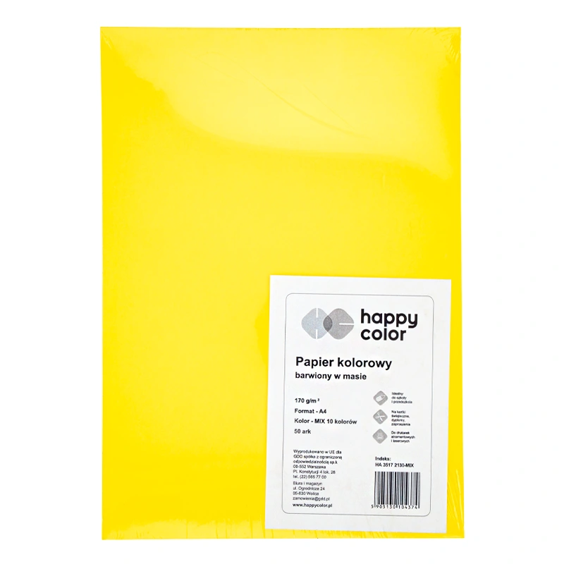 Kolorowy papier barwiony w masie o gramaturze 170 g firmy Happy Color. Idealny do szkoły i scrapbookingu, do prezentacji zdjęć, rysunków, grafik. Dobrze sprawdzi się w druku na drukarkach laserowych i atramentowych. Idealny do prac manualnych np. przy tworzeniu kartek okolicznościowych. Posiada wysoką odporność na blaknięcie. Kolorystyka i jakość identyczna jak papiery o innej masie i rozmiarze z tej serii, co pozwala na łączenie różnych grubości papieru.