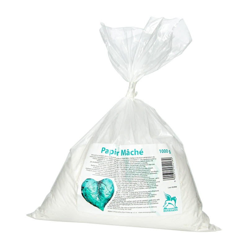 Paper mâché to mieszanka oparta na celulozie, doskonała do tworzenia lekkich i pustych prac przestrzennych. Mieszaninę tę przygotowuje się, łącząc ją z wodą w proporcji 1:1 i dokładnie mieszając, aż uzyska się jednolitą konsystencję.