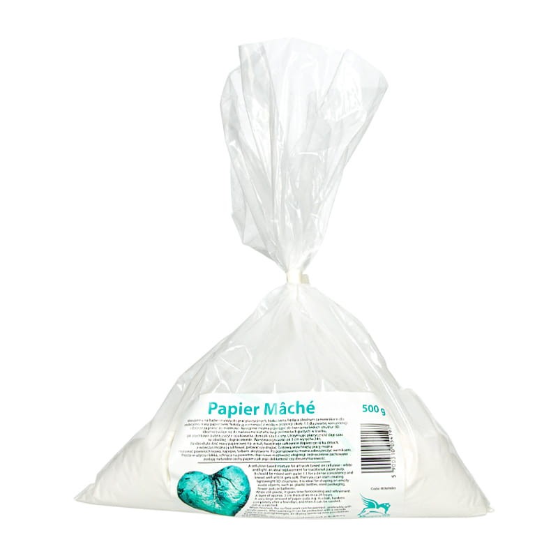 Paper mâché to mieszanka oparta na celulozie, doskonała do tworzenia lekkich i pustych prac przestrzennych. Mieszaninę tę przygotowuje się, łącząc ją z wodą w proporcji 1:1 i dokładnie mieszając, aż uzyska się jednolitą konsystencję.