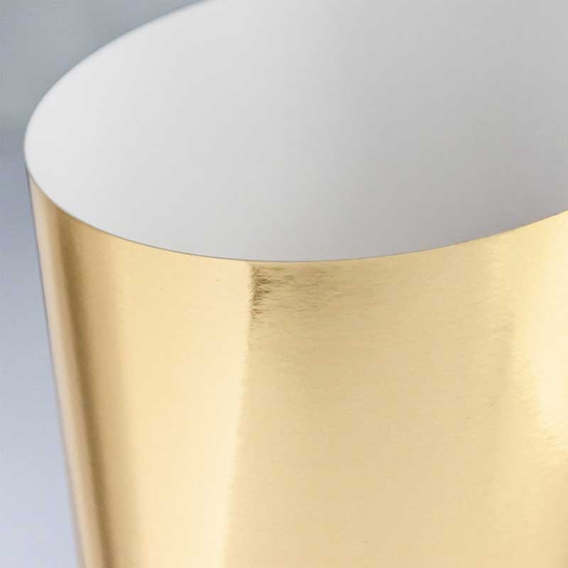 Złoty papier lustrzany w formacie A4 (300 g/m²) to jednostronnie powlekany karton o intensywnym, lustrzanym połysku. Spód arkuszy pozostaje biały i matowy, co ułatwia klejenie i mocowanie elementów. W opakowaniu znajduje się 10 arkuszy papieru.