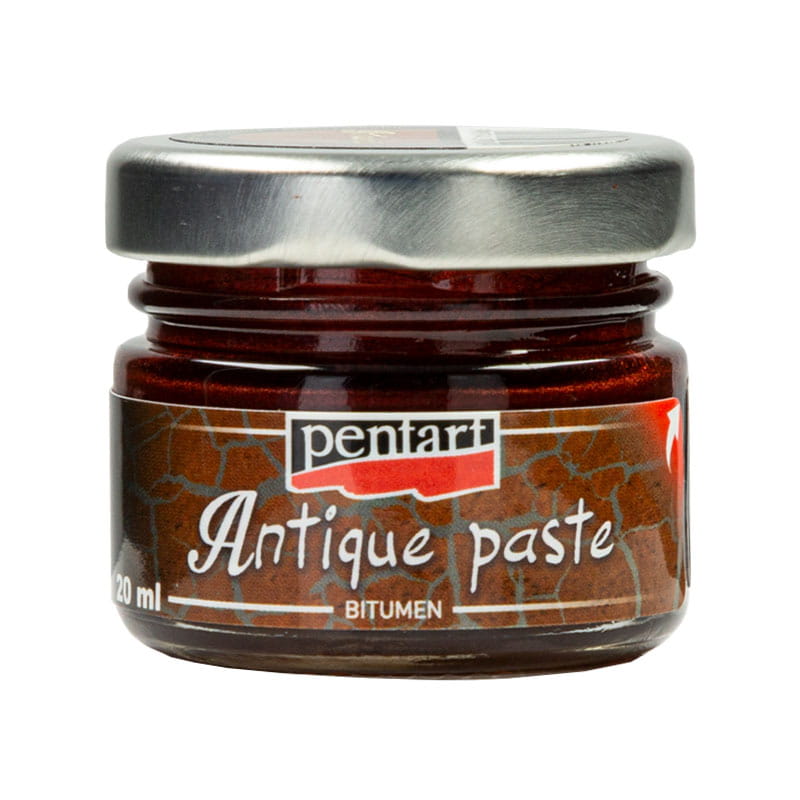 Pasta do postarzania 20 ml Pentart to gęsta substancja na bazie rozpuszczalnika, doskonała do uzyskiwania efektów antycznych, vintage lub metalicznych poprzez podkreślanie pęknięć powierzchniowych w lakierach pękających. Po nałożeniu pasty na powierzchnię można zetrzeć nadmiar suchą szmatką lub nasączoną rozpuszczalnikiem terpentynowym. Dodatkowo, po zaschnięciu, pastę można przetrzeć papierem ściernym, uzyskując dodatkowe efekty. Jest idealna do wypełniania spękań powstałych przy użyciu preparatów dwuskładnikowych i może być również używana na pomalowane wcześniej przedmioty, doskonale nadaje się do technik decoupage i projektów home design.