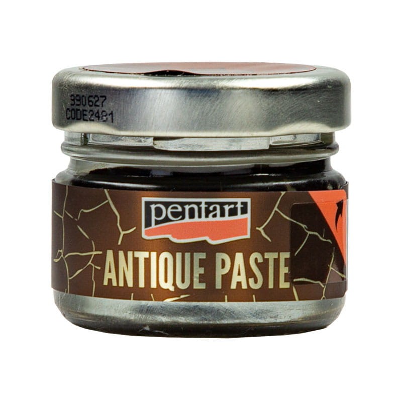 Pasta do postarzania 20 ml Pentart to gęsta substancja na bazie rozpuszczalnika, doskonała do uzyskiwania efektów antycznych, vintage lub metalicznych poprzez podkreślanie pęknięć powierzchniowych w lakierach pękających. Po nałożeniu pasty na powierzchnię można zetrzeć nadmiar suchą szmatką lub nasączoną rozpuszczalnikiem terpentynowym. Dodatkowo, po zaschnięciu, pastę można przetrzeć papierem ściernym, uzyskując dodatkowe efekty. Jest idealna do wypełniania spękań powstałych przy użyciu preparatów dwuskładnikowych i może być również używana na pomalowane wcześniej przedmioty, doskonale nadaje się do technik decoupage i projektów home design.