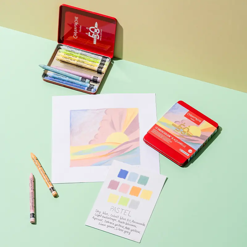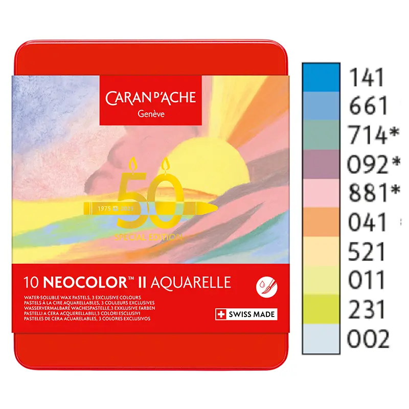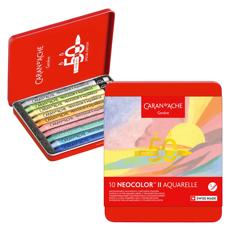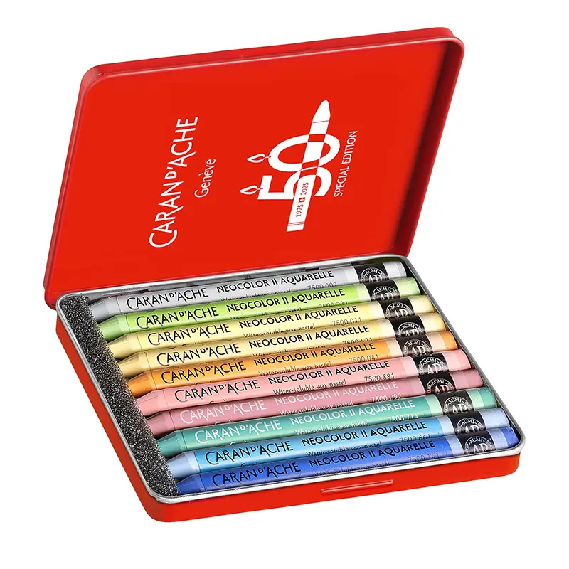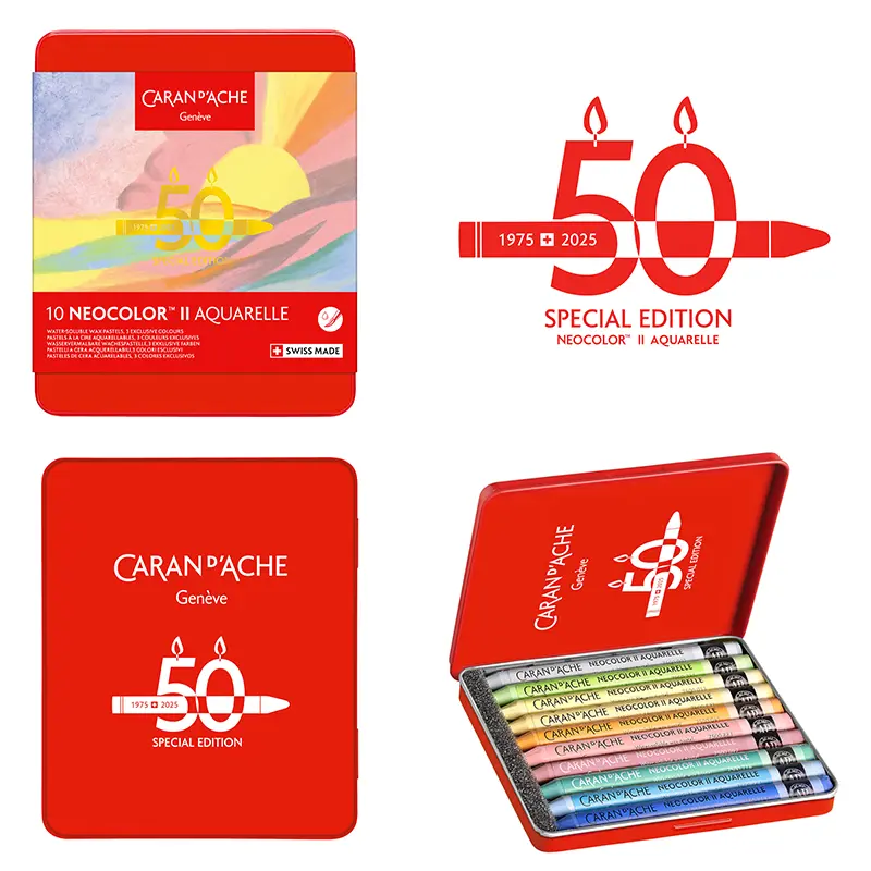 Z okazji 50 rocznicy marka Caran d’Ache wprowadza specjalną edycję limitowaną wzbogaconą o 15 nowych kolorów, dostępnych w pięciu tematycznych zestawach: Pop, Lush, Portrait, Pastel i Dark. Każdy zestaw zawiera 10 pasteli, w tym trzy nowe odcienie, zapakowane w kultowe metalowe pudełka z limitowanym logo.