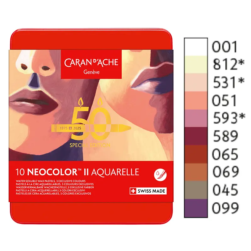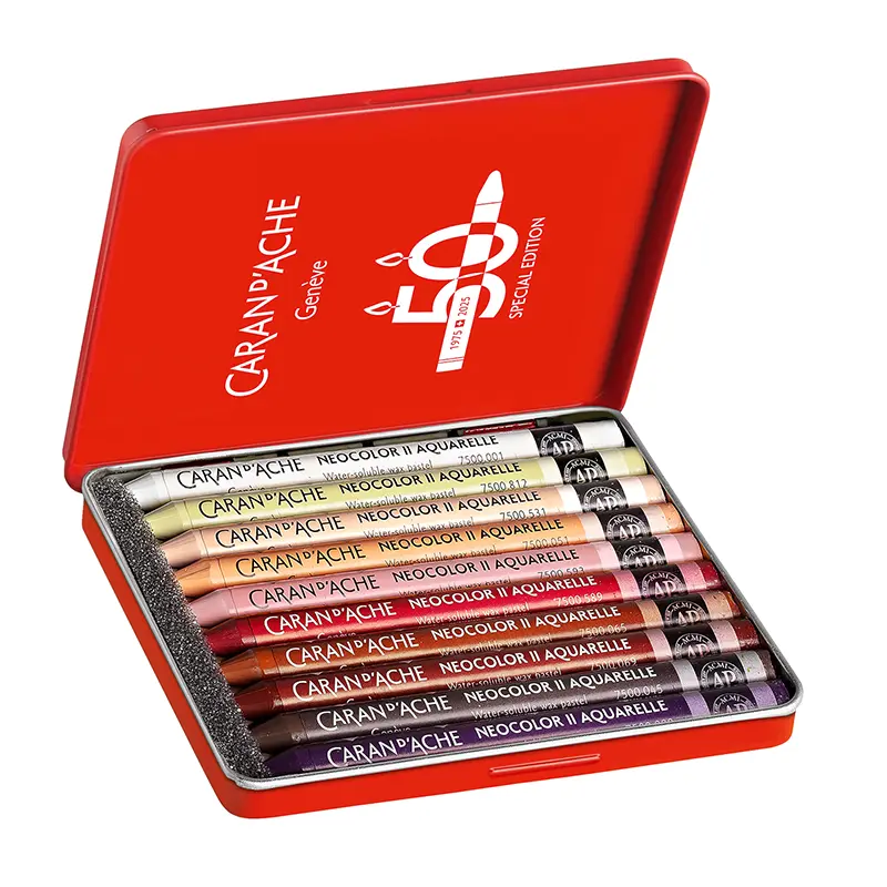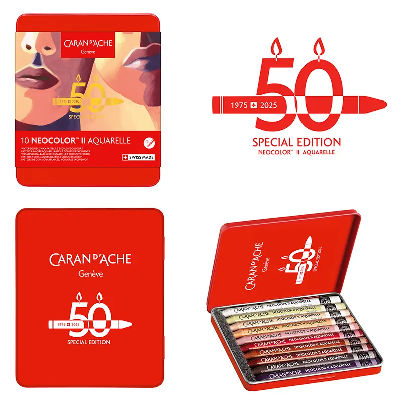Z okazji 50 rocznicy marka Caran d’Ache wprowadza specjalną edycję limitowaną wzbogaconą o 15 nowych limitowanych kolorów, dostępnych w pięciu tematycznych zestawach: Pop, Lush, Portrait, Pastel i Dark. Każdy zestaw zawiera 10 pasteli, w tym trzy nowe odcienie, zapakowane w kultowe metalowe pudełka z limitowanym logo.